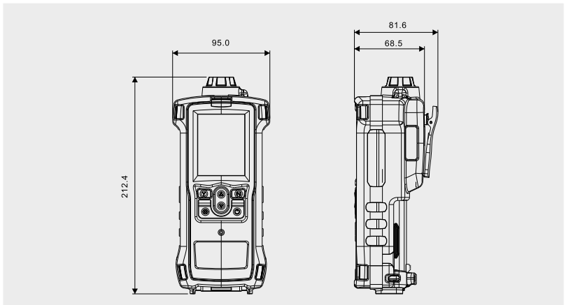 高清大彩屏,仿真圖標(biāo)顯示實(shí)時(shí)濃度、時(shí)間、溫度、濕度、通信、打印、電量、報(bào)警燈等狀態(tài);
